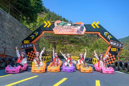 古龍峽與國民級競速游戲《QQ飛車》攜手,推出正版授權的實景賽道——【峽道QQ飛車】。這場融合虛擬與現(xiàn)實的速度盛宴,完美地將游戲中的速度體驗復制到了壯麗的峽道之中。賽道全長3680米,九曲二十八彎再現(xiàn)游戲內(nèi)的經(jīng)典彎道,包括直角彎、發(fā)夾彎、360度螺旋彎、8字回旋彎等28個復合型彎道。其中,“9連發(fā)夾彎”更是超越了日本秋名山“5連發(fā)夾彎”的傳奇,成為國內(nèi)彎道最多、最長的山道滑車項目。游客可以駕駛專屬的無動力滑車,在重力的推動下以最高30km/h的速度俯沖而下,體驗與游戲“十一城”賽道相媲美的漂移快感。